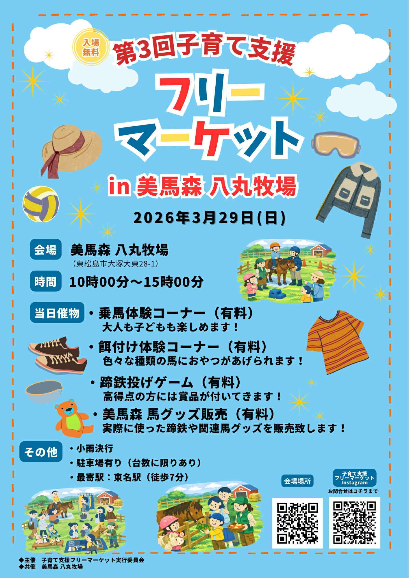 当日は、乗馬体験などふれあい企画(有料)もご用意いたしております。詳細は、チラシをダウンロードして、ご確認下さい。
